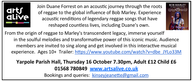 Bob Marley at the Parish Hall - Thursday, 16th October at 7.30pm. £12.00